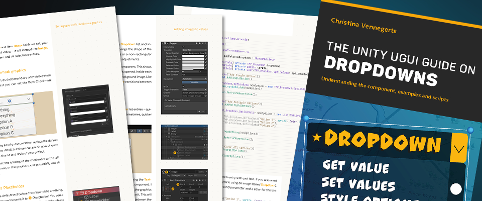 This 21-page guide leads you through everything you need to know about Unity’s Dropdown component. You’ll start by creating a  Dropdown in the hierarchy, explore its setup (Label, Arrow, Template, Scroll Rect), and learn how to populate options both in the Inspector and via script—including turning your list into a multi-select dropdown with bitmask flags for advanced selection logic. Clear, illustrated examples show you how to style text-only dropdowns, add images to entries, build image-only dropdowns, customize checkmarks, and set up placeholders for better UX .